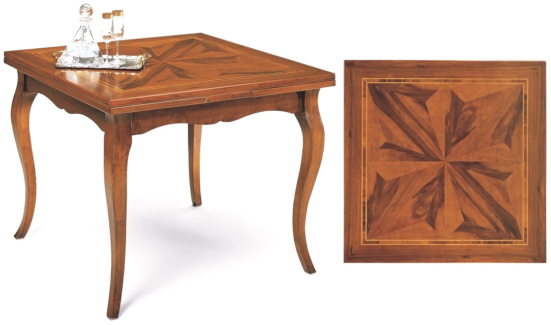 Art - Wt 146 - Tavolo Bassano Quadrato O RettangolareART - WT 146 - TAVOLO QUADRATO O RETTANGOLARE BASSANO QUADRATO MIS : L 100 X L 100 ( RADDOPPIABILE APERTURA A LIBRO ) RETTANGOLARE : MIS : 160 X 85 ALLUNGABILE ( APERTURA CON 2 ALLUNGHE LATERALI DA 40 CM ) PIANO RADICATO FILETTATO LUCIDATURA NOCE SEMILUCIDO N.B. VERIFICARE LA DISPONIBILITA'