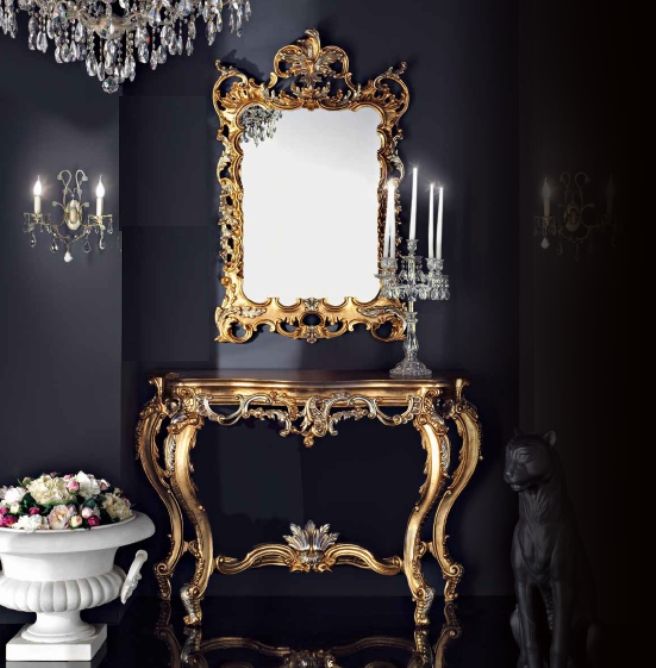 Art - W 52231 - Consolle BaroccaART - W 52231 - CONSOLLE BAROCCA MIS : L 150 - P 65 - H 102 - COLORE COME FOTO COLORE NOCE CLASSICO Consolle Barocca con finitura anticata ornata oro OPTIONAL : SPECCHIERA BAROCCA SPRUZZATA ORO € 2190.00 OPTIONAL : SPECCHIERA FINITURA NOCE CLASSICO € 1790.00