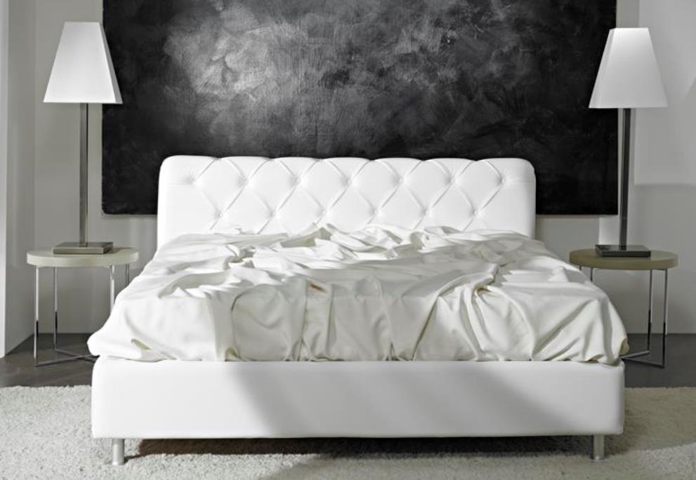 LETTO MATRIMONIALE IMBOTITO ECOPELLE BIANCA