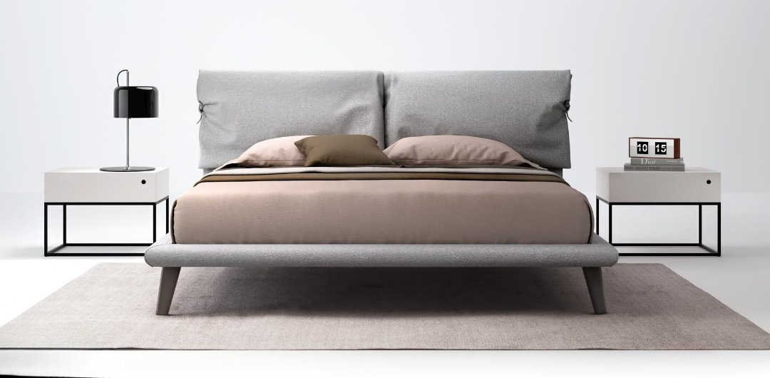 Estremamente accogliente la sua testata con morbido cuscino. Moderno ed elegante il fascione basso. .
