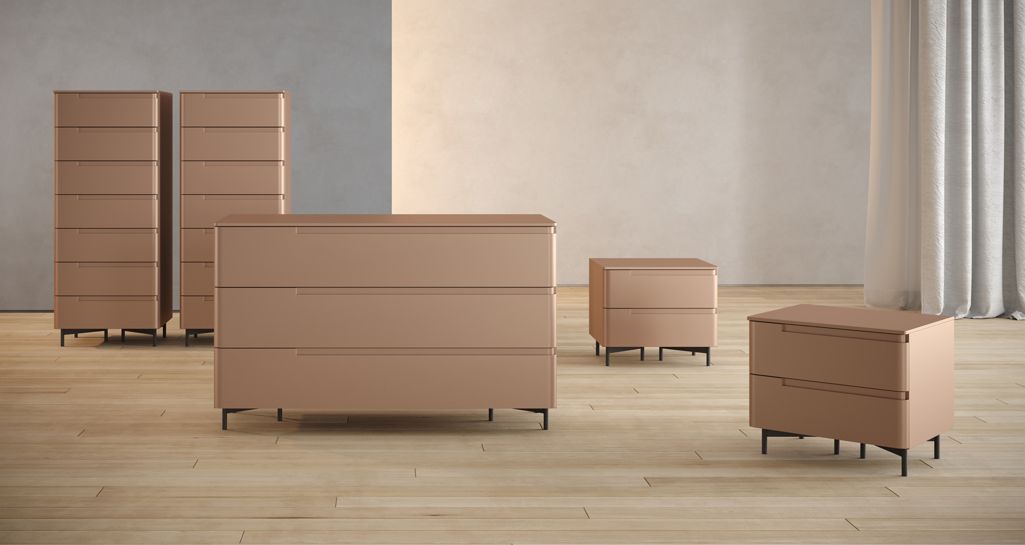 COLORE STRUTTURA E FRONTALI LACCATI OPACHI COMO' MIS : L 129 - P 55 - H 74 COMODINI MIS : L 55 - P 46 - H 44 SETTIMINO MIS : L 56 - P 46 - H 128 GUIDE CASSETTI AMMORTIZZATI LACCATI LUCIDI MAGGIORAZIONE + 5 % **