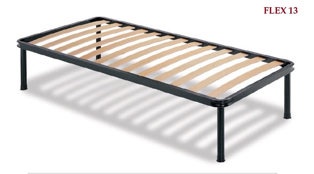 Flex 13 Rete Ortopedica Doghe StretteFLEX 13 RETE ORTOPEDICA DOGHE STRETTE STRUTTURA IN FERRO DOGHE STRETTE IN MASSELLO DI FAGGIO VERSIONE SINGOLA ........................- 80 X 190 VERSIONE 1 PIAZZA E MEZZO ......- 120 X 190 VERSIONE ................................- 140 X 190 VERSIONE MATRIMONIALE .........- 160 X 190 TELAIO TUBOLARE DA 40 X 25 PRODOTTO ITALIANO 4 Gambe diametro 5 cm sistema di fissaggio a vite ( facile da montare e smontare ) **