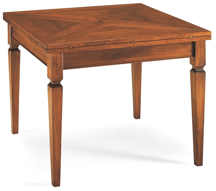 TAVOLO A SPICCHI LEGNO MASSELLO TOULIPIER - MIS : L 100 X L 100 - H 80 - ( MISURA APERTO L 140 X 140 H 78 - COLORE NOCE MEDIO DI SERIE - SU RICHIESTA SI ESEGUONO ALTRE LUCIDATURE